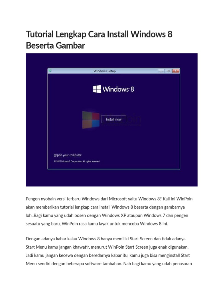 Tutorial Lengkap Cara Install Windows 8 Beserta Gambar Winpoin